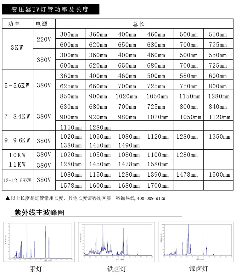 高壓汞燈可以產生輻射強烈的310nm 、365nm、410nm 等波長的特征紫外光(UV)、可見光及紅外光(IR)其中365nm為主峰的波長是世界各國常用的、用于固化干燥的波段(常規所稱謂的"